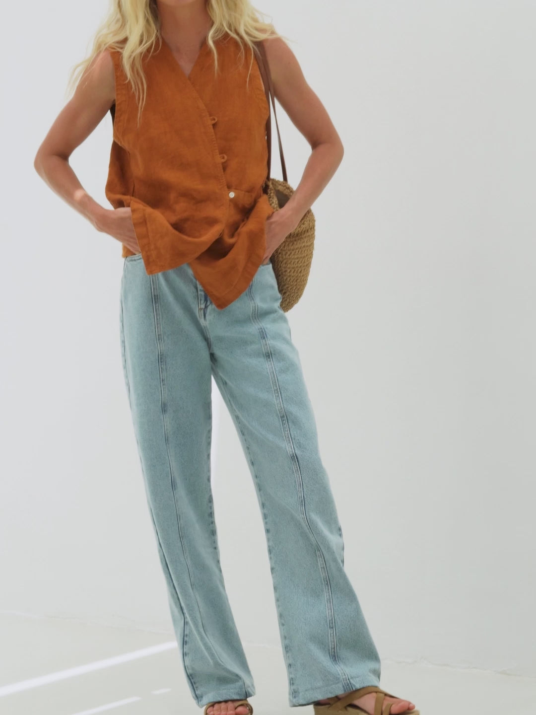 The Elsa jeans in light denim are perfect for casual or polished looks. With a comfortable high waist and relaxed wide-leg cut, they pair seamlessly with shirts, tops, or sweaters for a modern, timeless style.